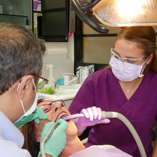 Nach einer professionellen Zahnreinigung, um die grobe Ursache zu beseitigen, folgt die geschlossene Behandlungsphase. Durch den Einsatz einer speziellen Lasertechnologie können wir schonend auf die restlichen Bereiche eingehen. Im Wechsel zwischen Heilungsprozess und Wiederholungstherapie können wir die Parodontitis vollständig entfernen und die natürlichen Zähne erhalten.